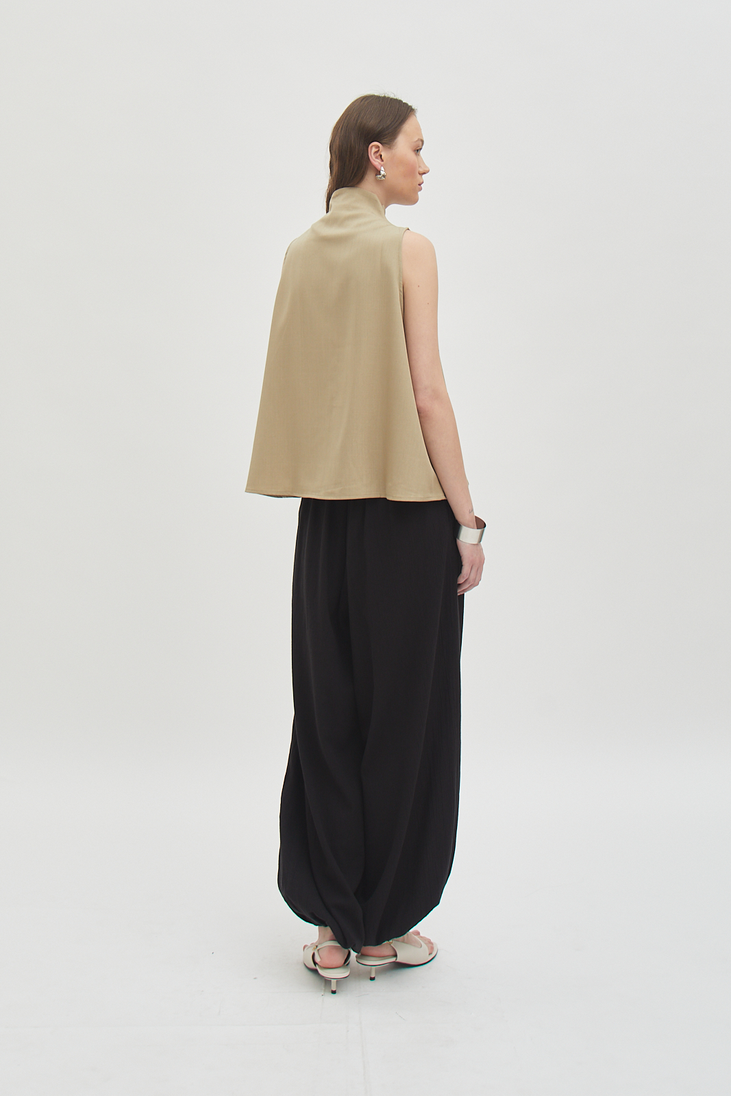 Made from woven fabric with a soft drape and clean surface.