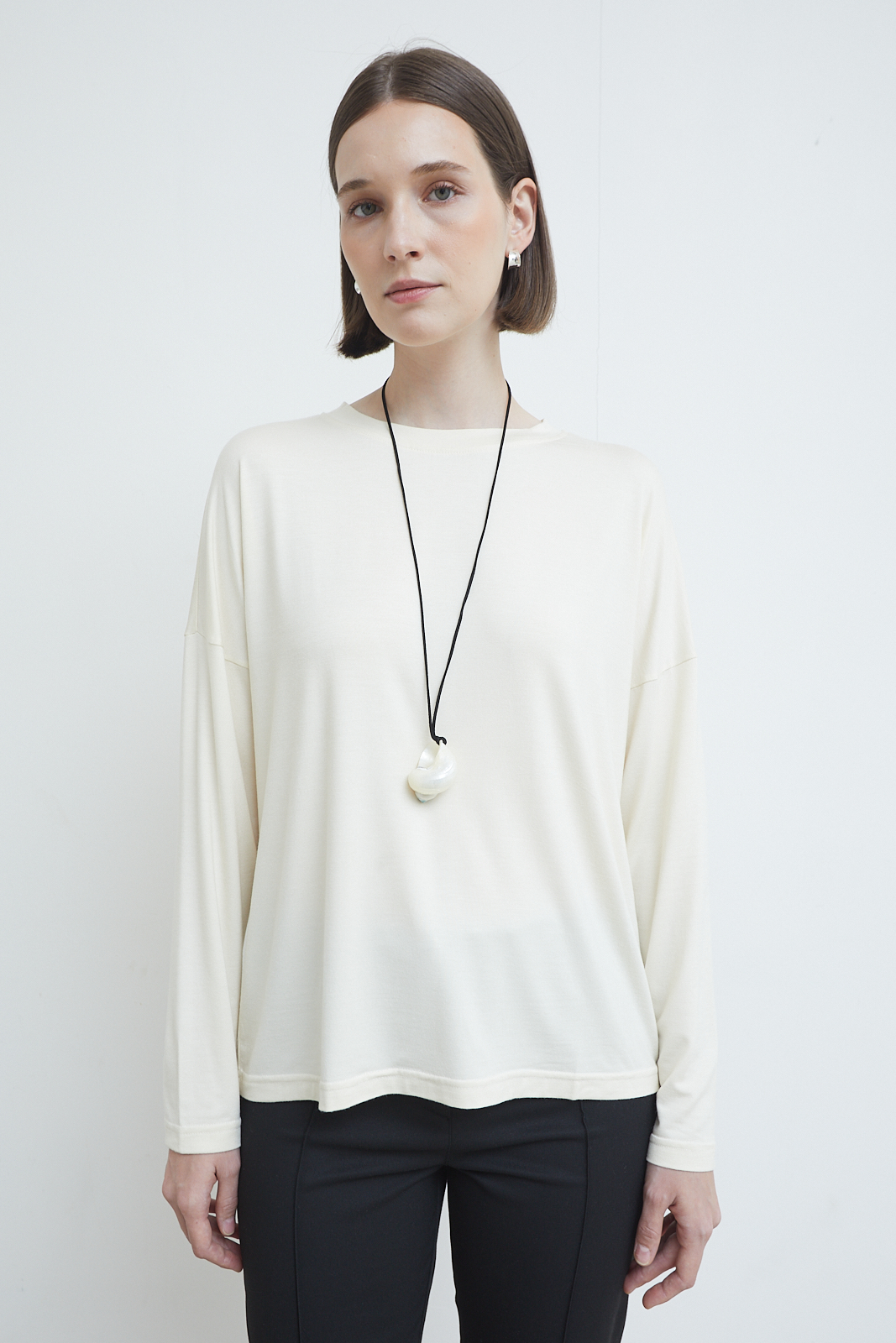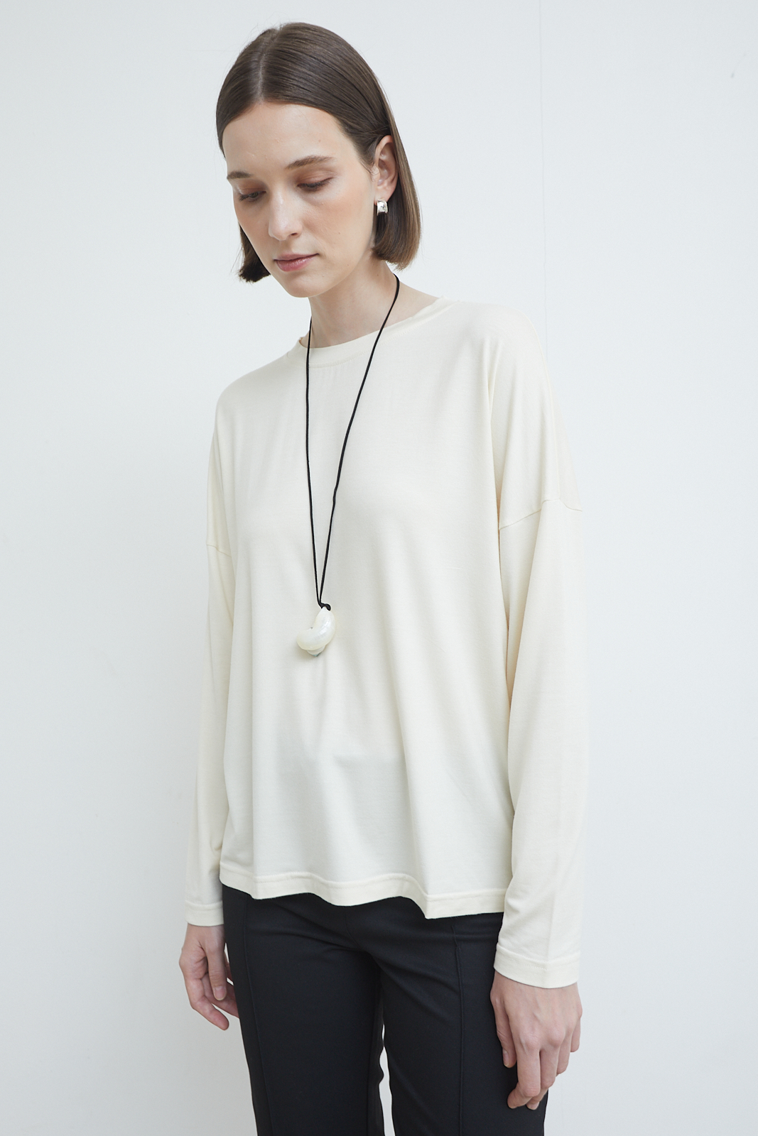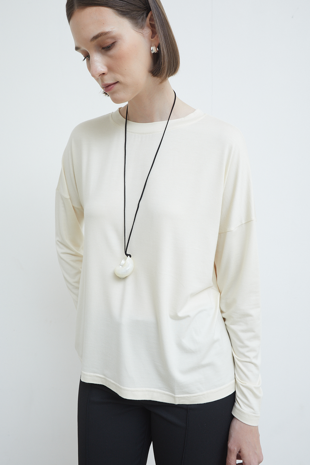Premium relaxed bamboo long-sleeve tee with a soft drape and clean, unstructured silhouette. Cut slightly loose through the body with a gentle drop shoulder and fluid movement, designed for quiet layering or worn on its own. Finished with a simple neckline and refined proportions for an effortless, everyday feel.