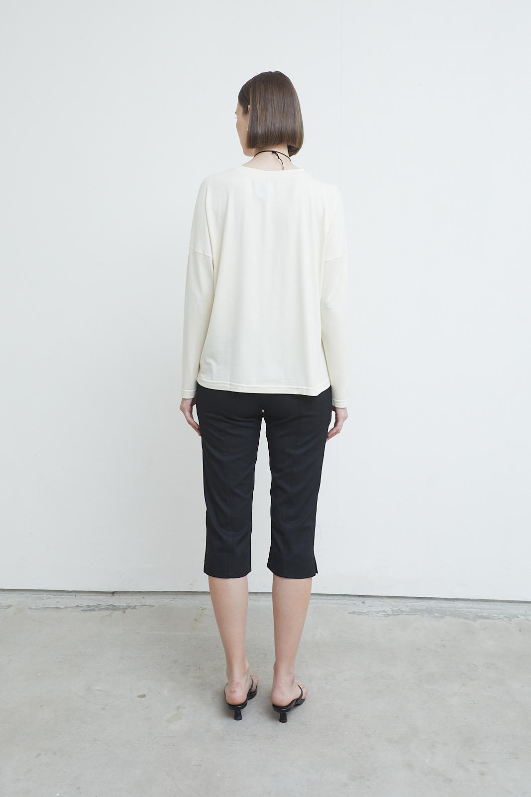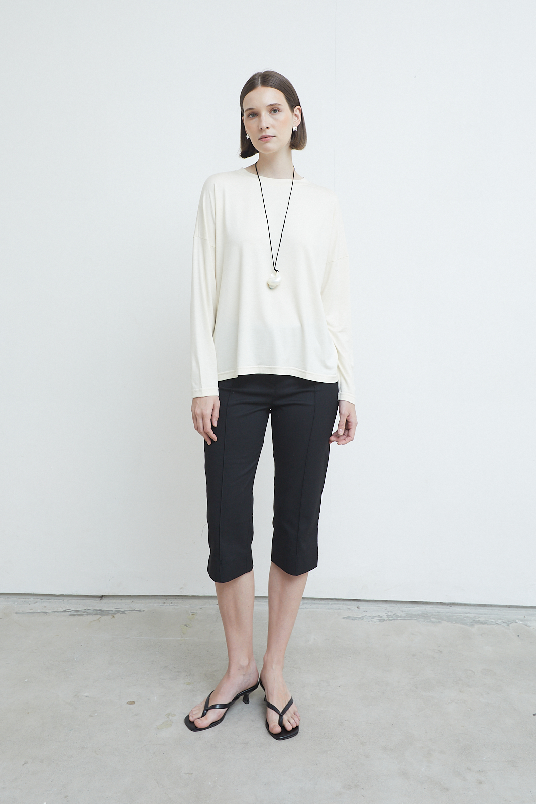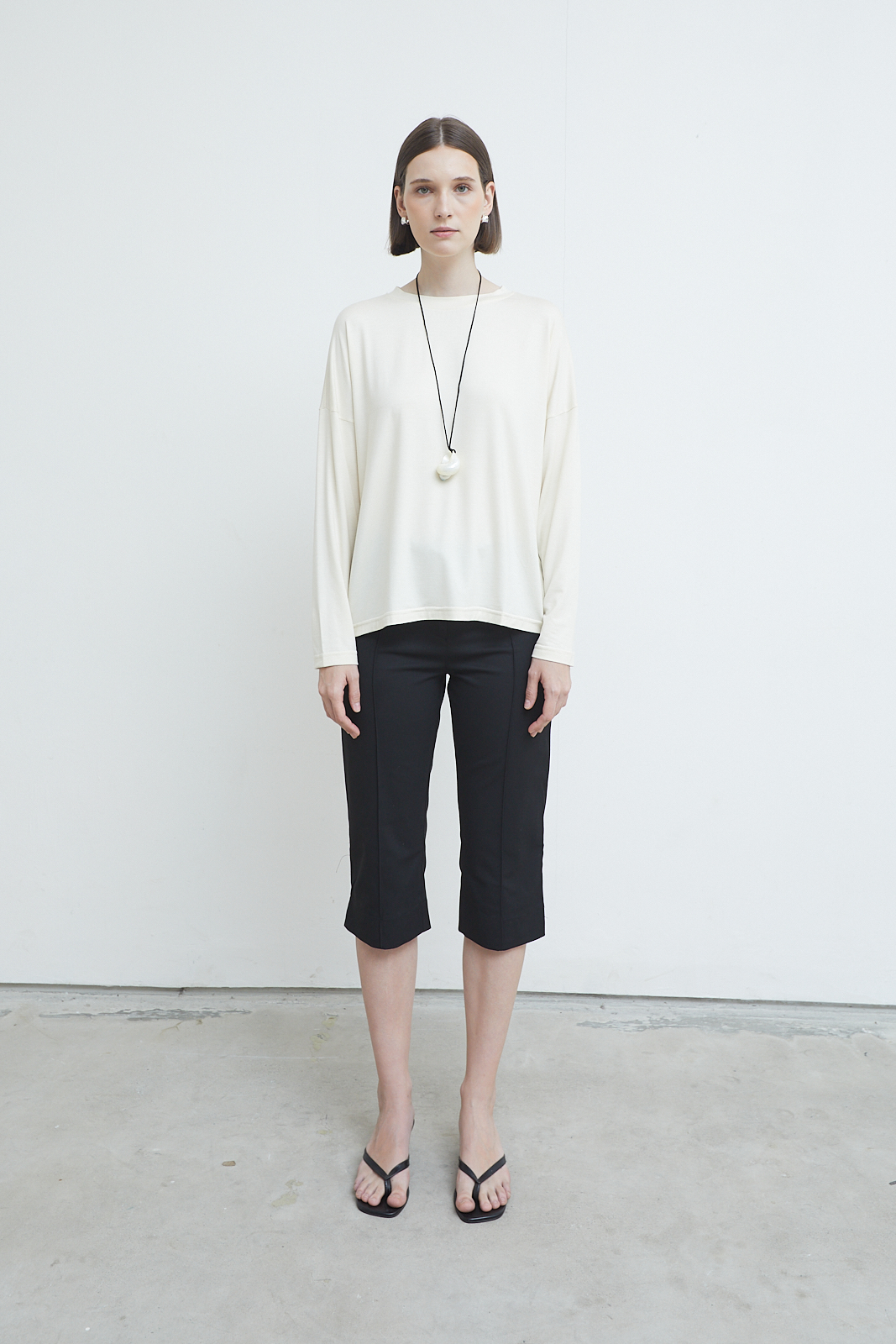 Premium relaxed bamboo long-sleeve tee with a soft drape and clean, unstructured silhouette. Cut slightly loose through the body with a gentle drop shoulder and fluid movement, designed for quiet layering or worn on its own. Finished with a simple neckline and refined proportions for an effortless, everyday feel.