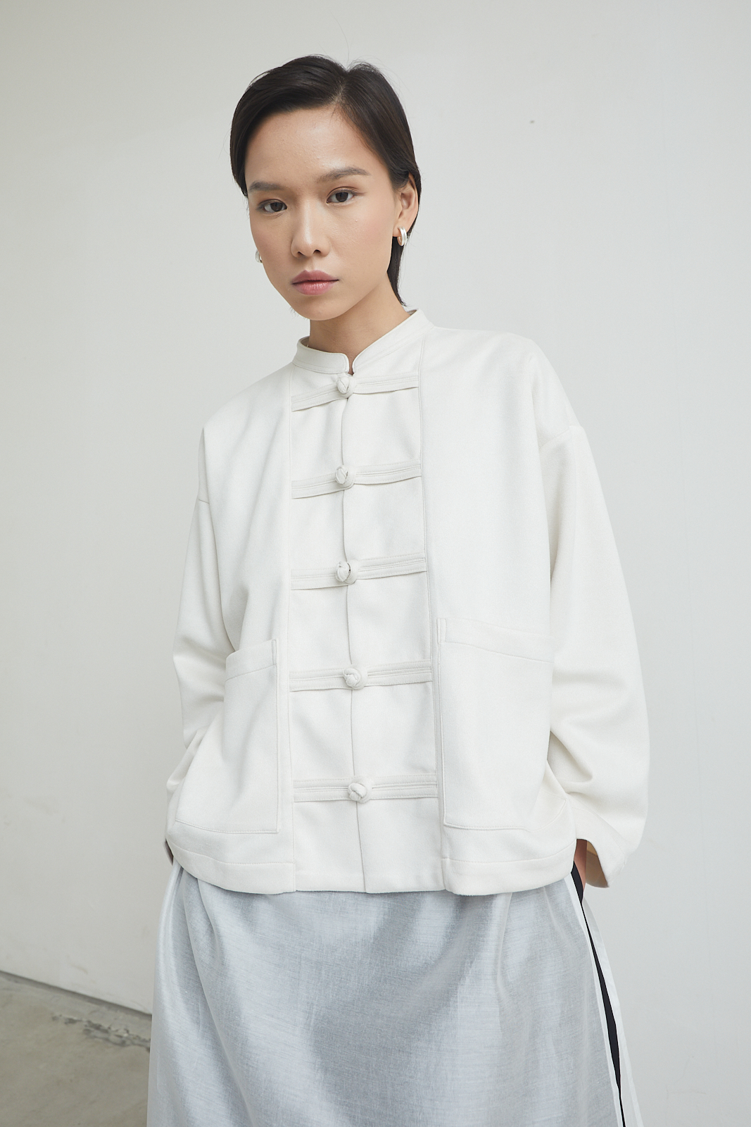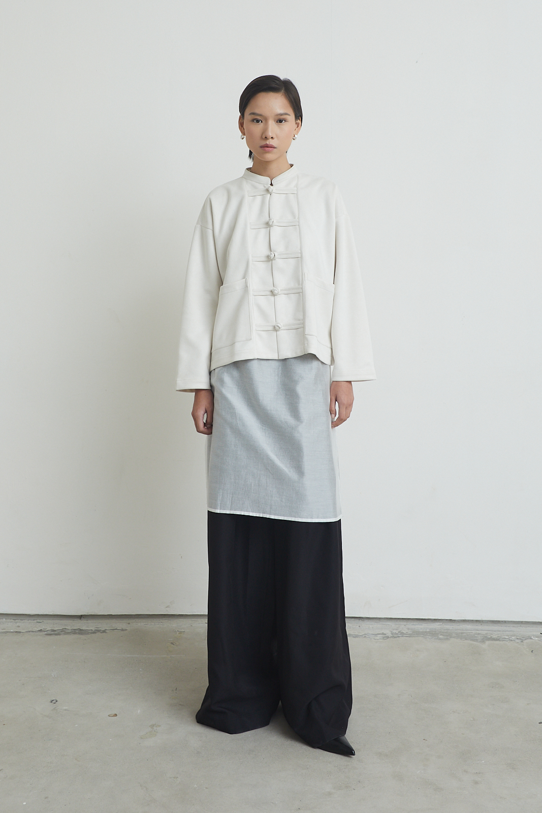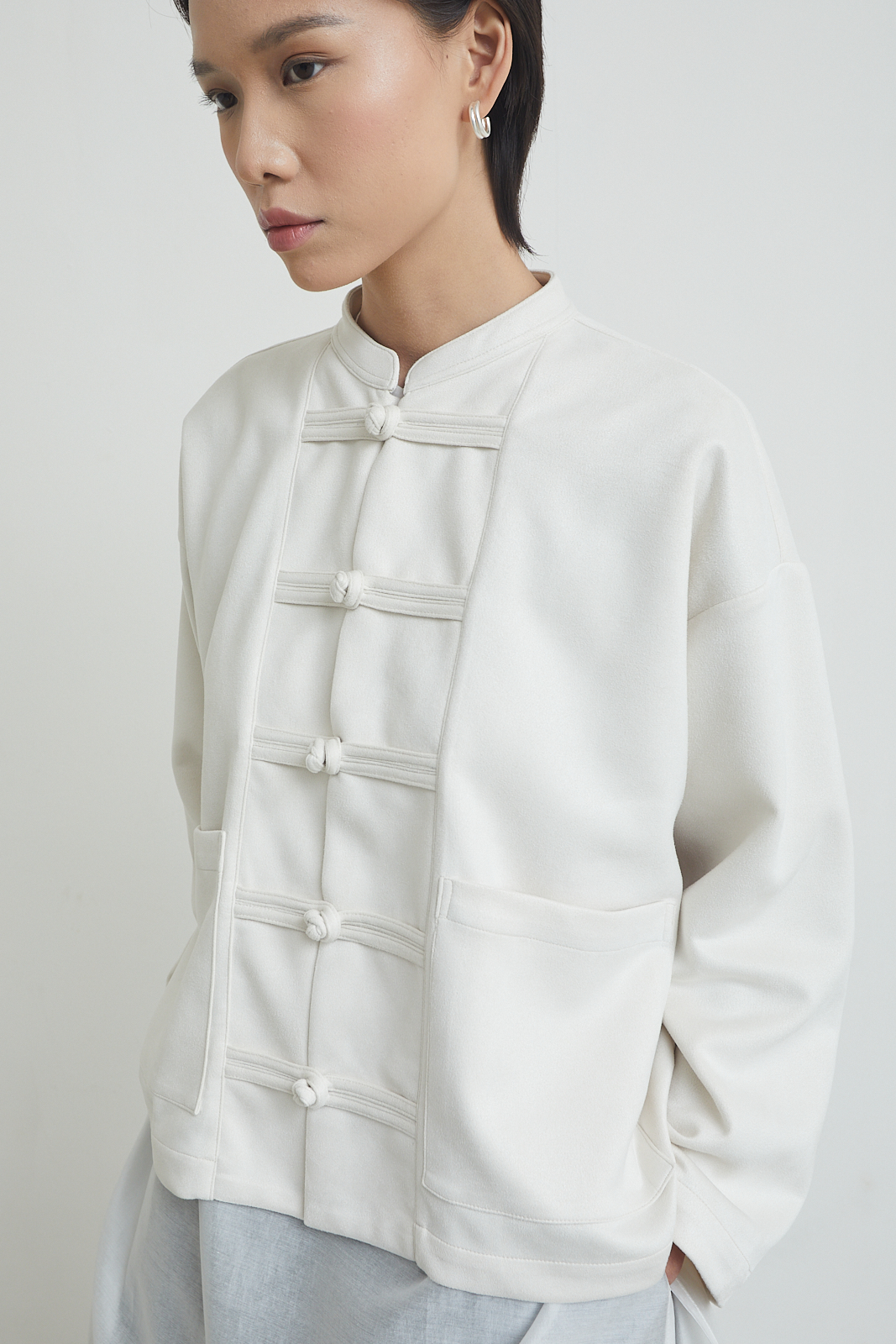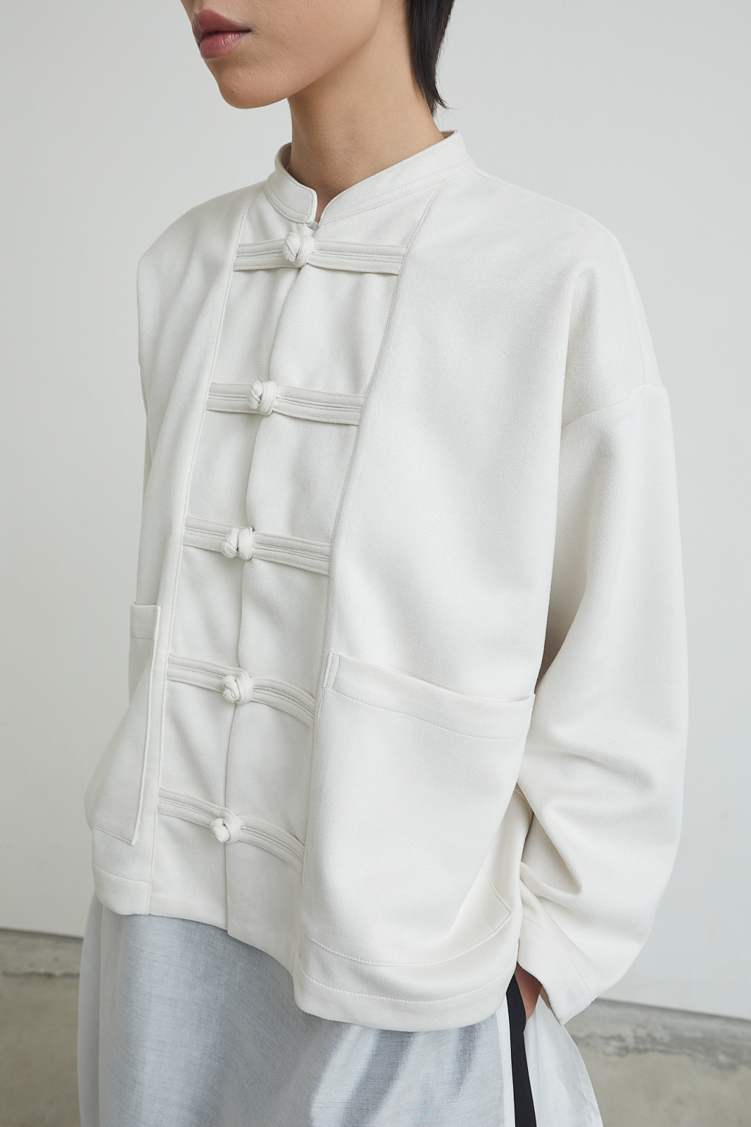 Short jacket with a relaxed, straight cut. Inspired by traditional toggle closure, reworked in a clean, everyday form. Easy to layer, structured but not stiff.