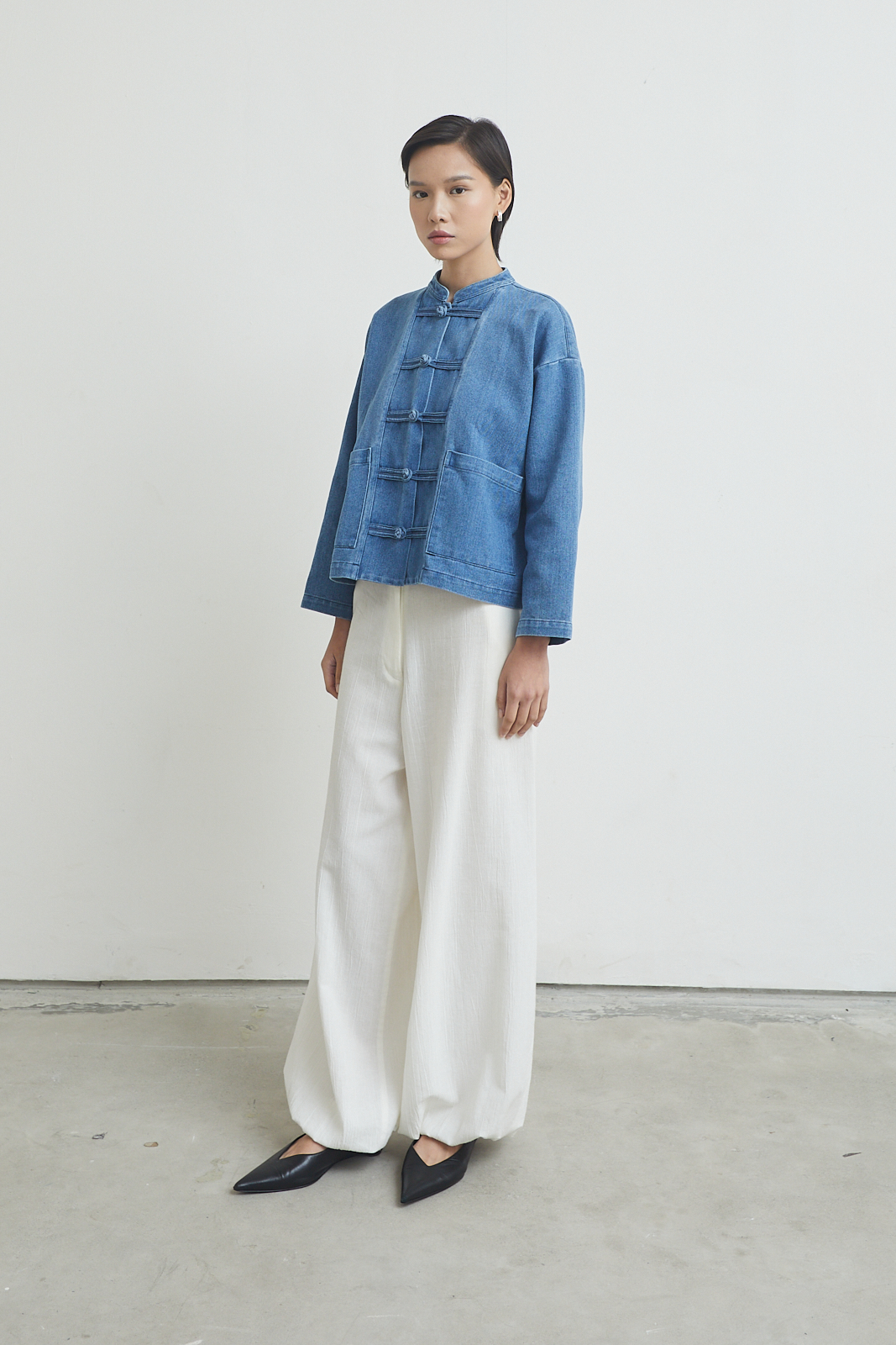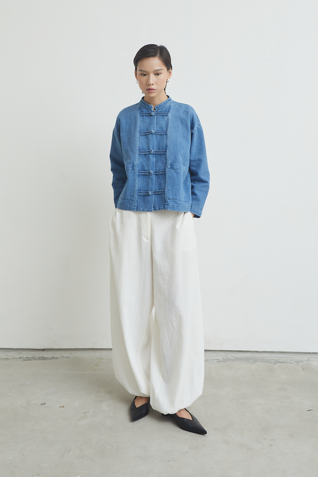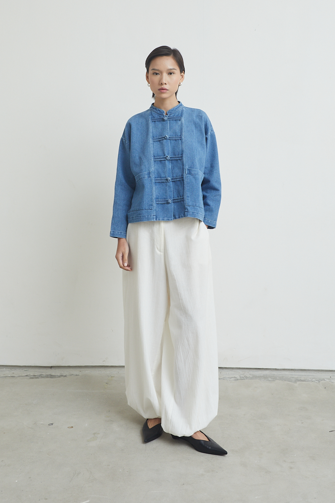 Short jacket with a relaxed, straight cut. Inspired by traditional toggle closure, reworked in a clean, everyday form. Easy to layer, structured but not stiff.